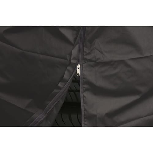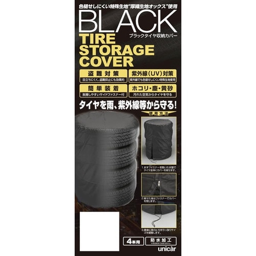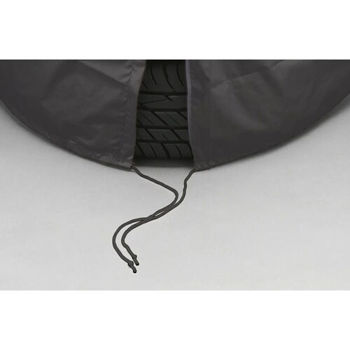 色褪せにくい圧織オックス生地を使用したタイヤカバーです。雨や紫外線を防ぎ、ファスナーと裾しぼりロープで装着も簡単です。 |