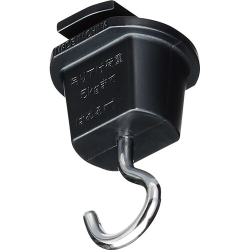 材質(本体):ABS樹脂 | 材質(フック):SWRH(φ3) | 質量:12g | 色:ブラック | 吊下げ:5kgまで | 単位:1個