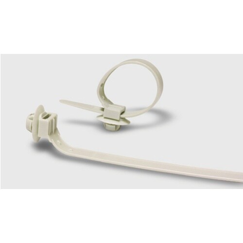 電路支持金具で多く採用されているφ14mmの穴にセットして使用。金具への取付は穴に差し込むだけの簡単固定。セット後はラジオペンチなどで取り外し可能。突起がPF管の溝にフィットしズレを防止 |
