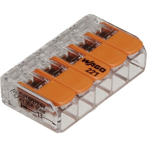 入り数:5個 | 接続電線本数:5本 | 定格(電気用品適合):30A、300V | 定格(JIS適合):41A、450V | 適用電線(電気用品適合…