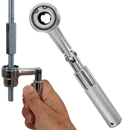 持ち手は細く、握りやすいローレット加工。落下防止ワイヤー穴付き。早回し機能付きで軽量スマート。W3/8(3分)は片ロック(簡易ラチェット)で早回しが可能(全ネジ貫通可)。 |