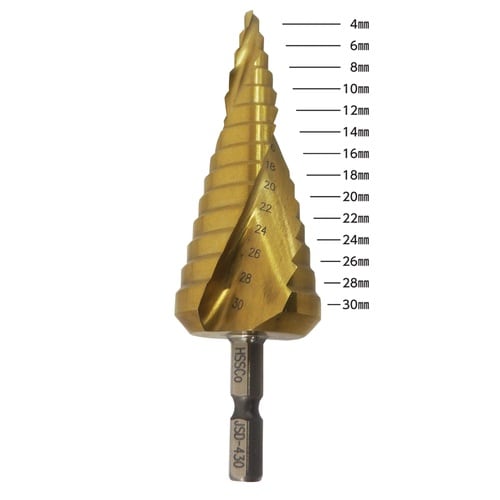 耐久性に優れたコバルトハイス鋼使用。1種類で最大14サイズの穴開け加工が可能。鉄板(2.0mm以下)、ステンレス板(1.6mm以下)などの穴あけに最適。 |