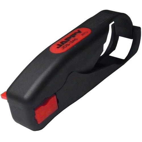 同軸ケーブルを挟んで回すだけ。調整不要の2枚刃で簡単・安全・キレイ。出したい芯線の目安長の目盛付き。3C―5Cケーブルに対応 |