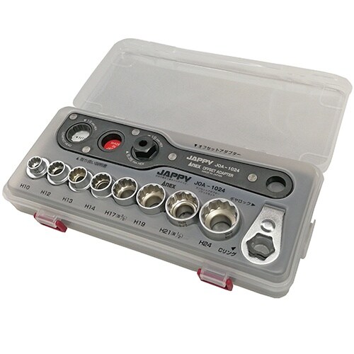 狭い箇所でのボルトやナットを素早くねじ回し。8種類の付属ソケットで多種のボルトナットに対応可能。付属のギアロックを使えば手締め作業も可能。専用セットケース入り |