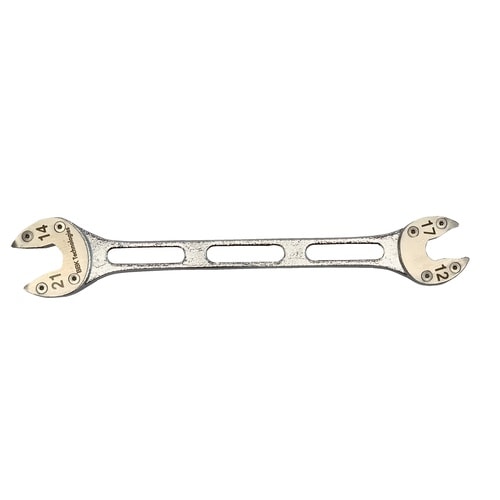 ルームエアコン(1/4、3/8用)室内機側ユニオン部の六角固定用レンチ。1本で4サイズ(12、14、17、21mm)の固定が可能。 |