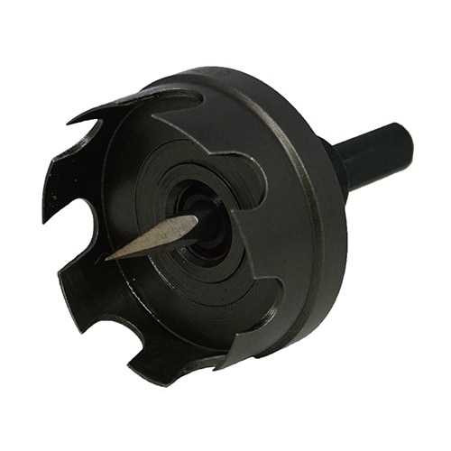 プルボックス(樹脂)の穴あけ作業に最適。塩ビパイプを綺麗に貫通可能。ビニル板貫通の瞬間、切片が落下。切断面の仕上がりが綺麗 |