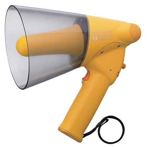持ち運び簡単で、小さなPAシステム「メガホン」。防滴仕様、ワイヤレス対応、壁掛金具対応など、用途に応じてお選びいただけます。