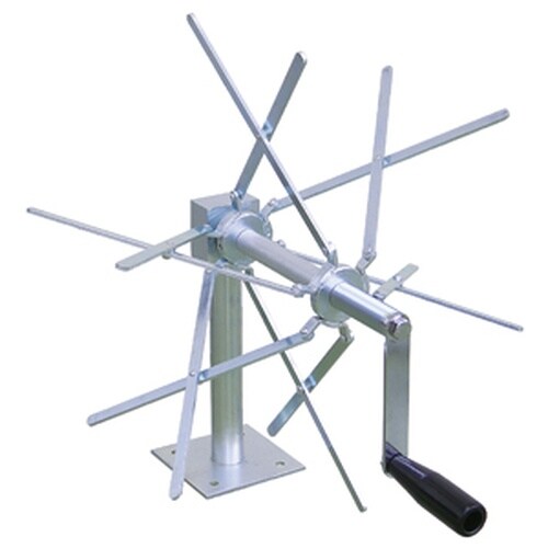 巻き取った電線はケーブル巻取機のハンドルをはずし、羽根をすぼめて取り出せる |