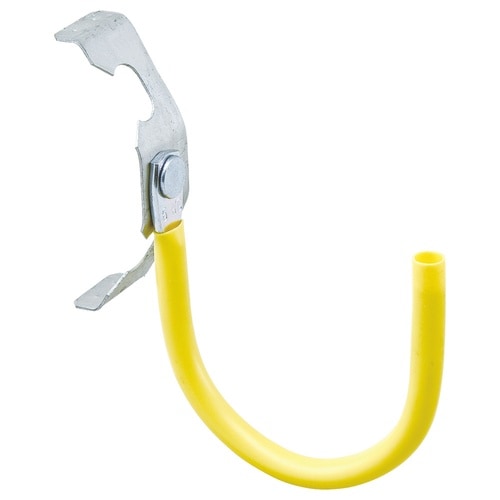 吊りボルトへ固定するクリップ部と、ケーブル支持のフック部を一体化。組み合わせの手間がいりません。  フック部は、ケーブル保護用のビニル被覆付き。
