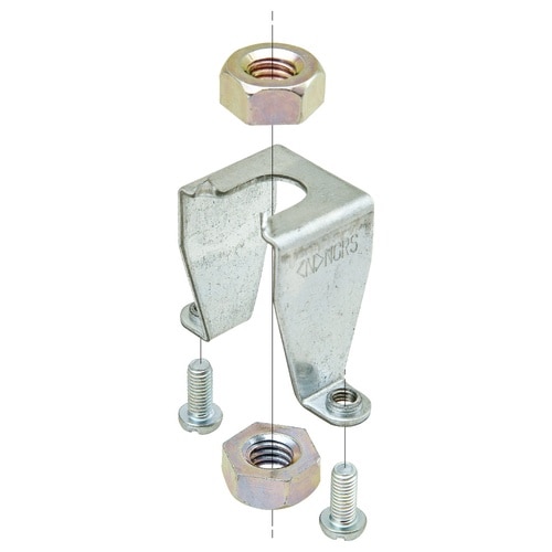 アウトレットボックスの中心で吊れます。 吊りボルトにナットを付けたまま、取り付けできます。 合成樹脂製ボックスにも使用できます。 |