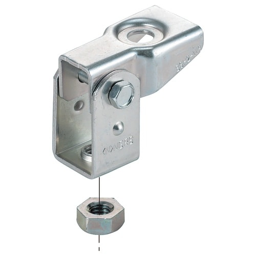 天井、壁面から吊りボルトを斜めに下げられます。 六角ボルトと工具(ソケット)が干渉しないため、金具を組み立てた状態で施工できます。 振れ止めボルトの支持に使用できます。