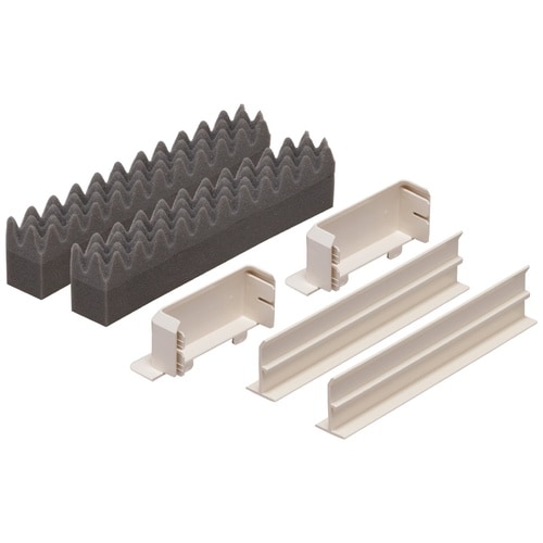 パテを使わずにケーブル引込口を塞ぐことができます。 難燃性・低燃焼性の材料を使用しており、安心してご使用できます。 長さは長辺板を加工することで調整可能です。 短辺板の取付爪を折り取ることで、外フラン |