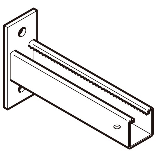 壁面にアンカーボルト等で施工の際は、アンカーボルトの引抜力、低減率等を考慮し、ブラケットへの積載荷重を決めてください。 許容静荷重はブラケットのみの強度です。 |