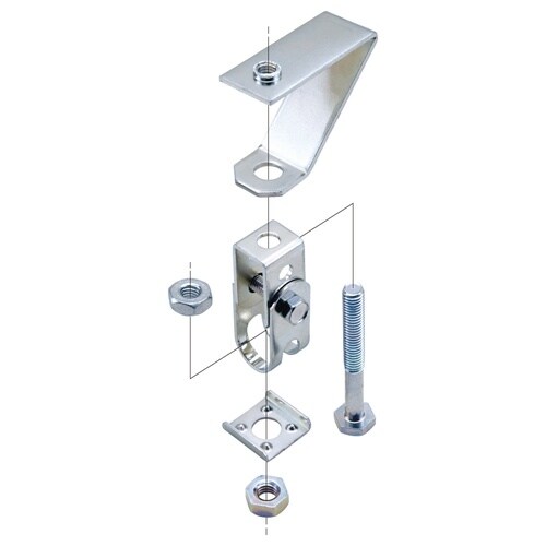 本体金具のタップ加工により、下からの締め付けだけで取り付けできます。 下部金具に吊りボルトをセットした状態でアングルに固定できます。 造営材の向きにかかわらず、補強金具なしで使用できます。