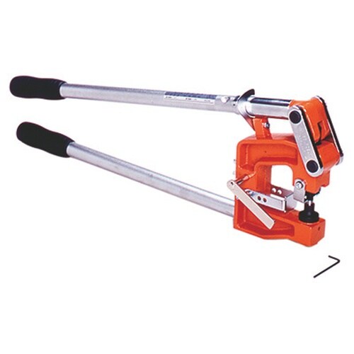 手動式ですので電源がいりません。 適合するケーブルラック、金属ダクトに継ぎ金具用の穴(φ10.5)をあけられます。 親桁上面からの挿入も可能なため、施工後のケーブルラックにも穴あけができます。 ハンド |