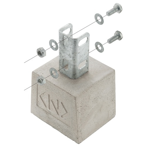アングル配管架台の基礎として、簡単に使用できます。 本体上部の取付金具と附属のボルト類により、アングル材を確実に固定できます。 ブロックは防水処理により、撥水性に優れ劣化しにくくなっています。 |