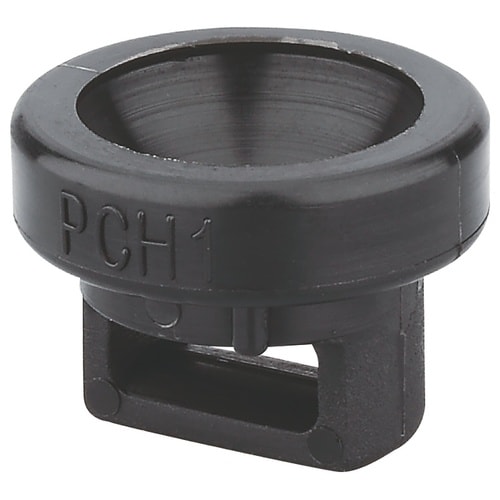 電線管支持用のPH1、PH1F、K10Lに取り付けることで、ナイロンバンドによるケーブル固定ができます。 取り付け穴と平行にケーブルの向きを自由に変えられます。 |