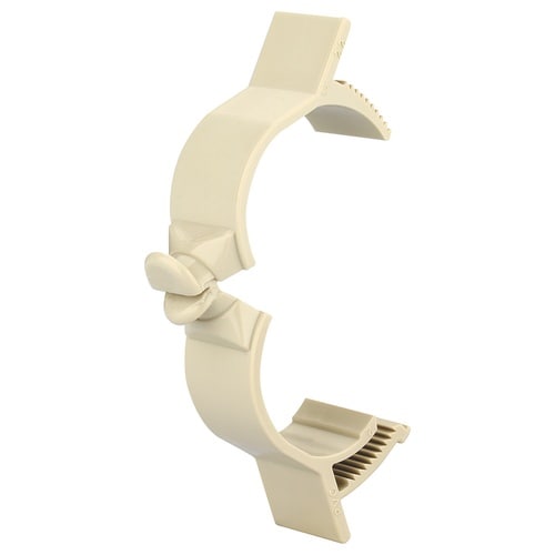 取り付けは、工具不要でワンタッチ。 一体型のため、運搬、管理が便利です。 クリップ中央のビードがPF管の波間に入り込むため、PF管が滑りません。