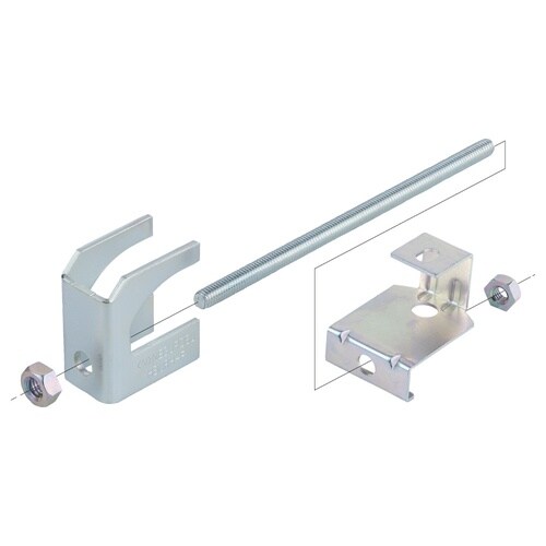 H形鋼の水平方向に対して、外れにくくするための補強金具です。