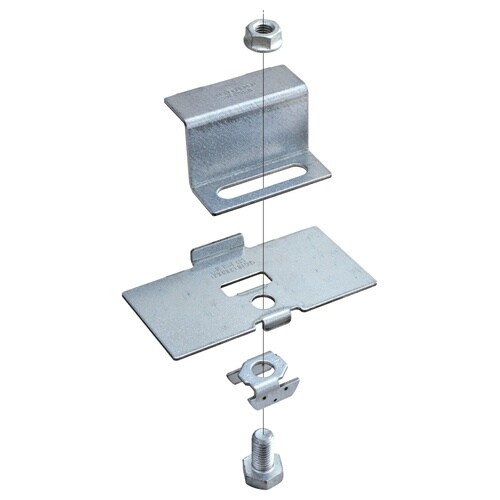 ハゼ式折板屋根用支持金具、ダクターチャンネルと組み合わせて軽量床板材を簡単に 取り付けできます。
