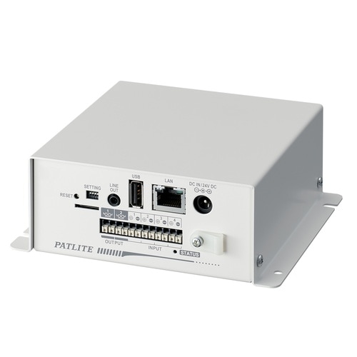 Ethernet (LAN) とデジタル入出力接点を変換し、回転灯や、音声合成機器等でシステムの情報の報知ができます。 |