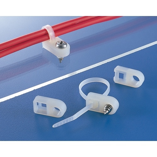 インシュロックタイのヘッドが固定具の中に収まり、引っ掛かりを抑える構造です。