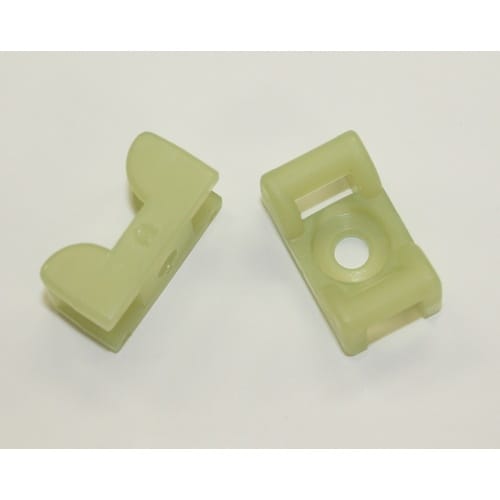 配線固定具「タイマウント(KR)」の66ナイロン耐熱グレードです。台座形状のため、配線をしっかり保持します。 |
