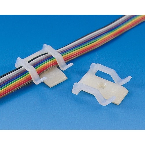 「リボンケーブルクランプ」は、フラットケーブル用固定具です。シールをはがすだけで、任意の場所に固定できます。 |