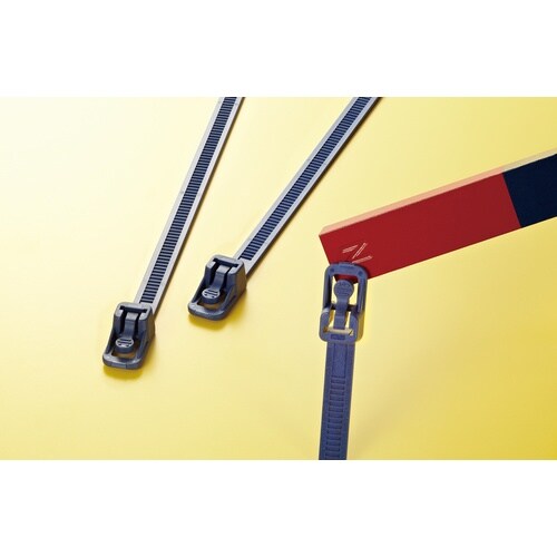 材質:変性66ナイロン・鉄系成分 | 色:青 | 常時使用温度範囲(日本):−40℃―+85℃ | 幅 W(mm):4.7 mm | 全長L(mm):…
