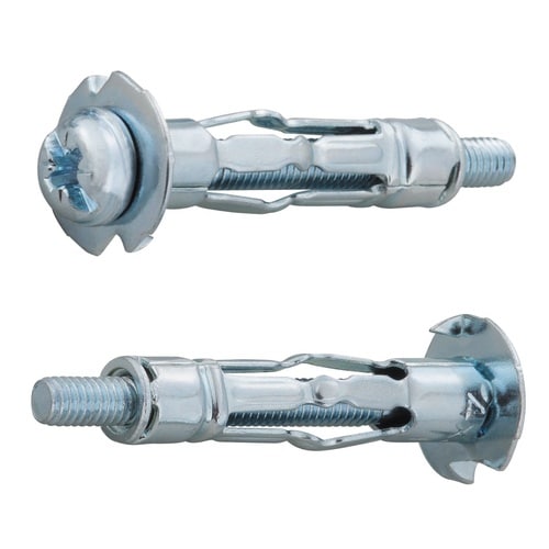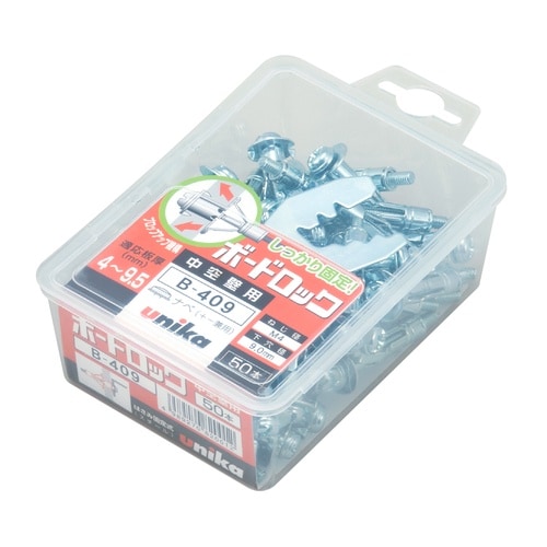 壁を内側・外側の両面から押さえるので、中空構造壁にもしっかり固定。 |