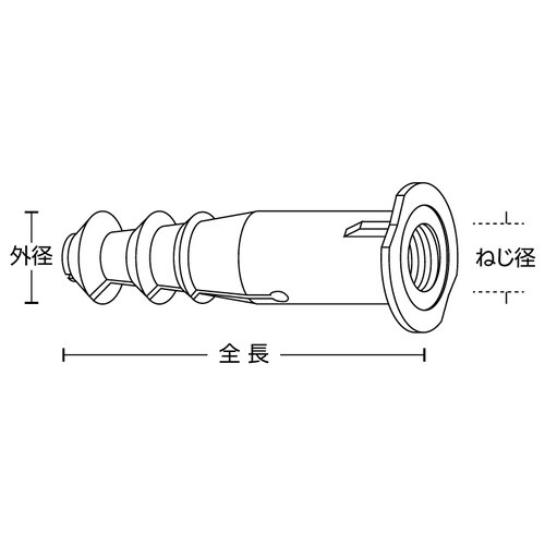 強い引抜き力、保持力を誇る3段突起採用、ALC板専用めねじアンカー。 |