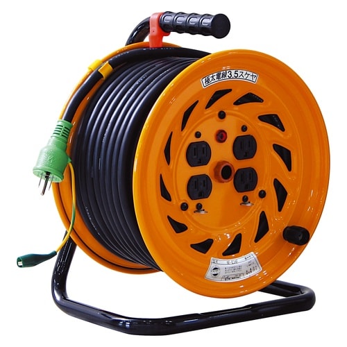 屋内型の電工ドラム30mです。電圧ドロップの少ない極太電線3.5【mm2】仕様です。入力プラグはポッキンプラグです |