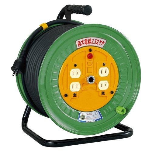 屋内型の電工ドラム50mです。電圧ドロップの少ない極太電線3.5【mm2】仕様です。入力プラグは2Pプラグです |
