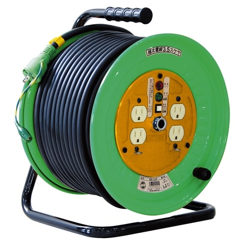 屋内型の電工ドラム50mです。電圧ドロップの少ない極太電線3.5【mm2】仕様です。入力プラグはポッキンプラグです |
