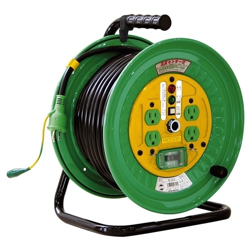 屋内型の電工ドラム30mです。ブレーカータイプは漏電保護専用、温度センサー搭載(手動復帰タイプ)です。入力プラグはポッキンプラグです |