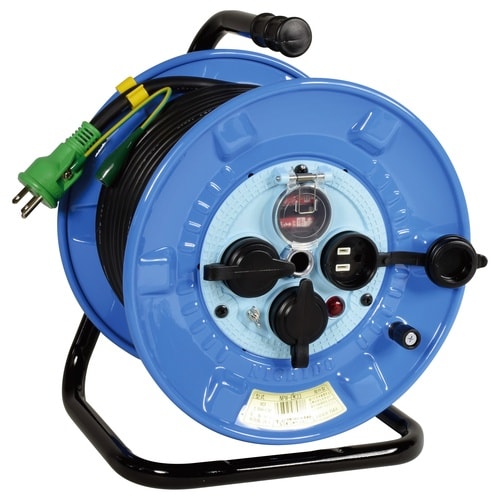屋外型の電工ドラム30mです。ブレーカータイプは過負荷漏電保護兼用です。入力プラグはリペアポッキンプラグです。 |