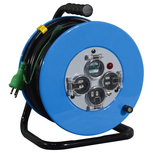 屋外型の電工ドラム30mです。ブレーカータイプは漏電保護専用、温度センサー搭載(自動復帰タイプ)です。入力プラグはポッキンプラグです