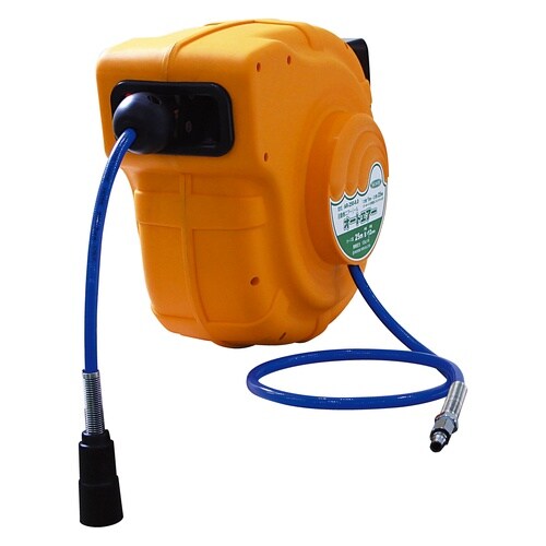 屋内型の自動巻きエアホースリール25mです。相手側カップリングは日東工器製カプラに適応します。交換適応カップリングは オス:日東工器80PN メス:日東工器200−80SN が適合します |