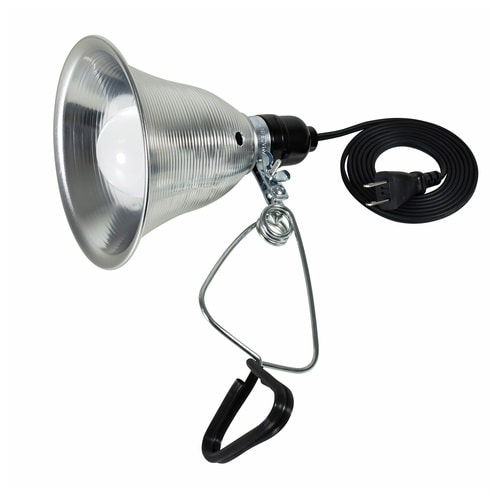 屋内型、AC100V専用、LEDクリップランプです。電線の長さは約1.8m、コード先端は2Pプラグです |
