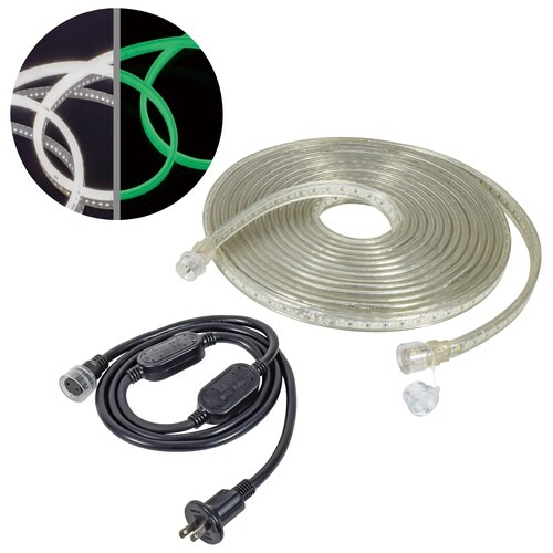 屋内・屋外兼用型、AC100V専用、帯状LED蓄光タイプです。長さは5m、両面発光です。別売オプションの延長用ラインで50mまで延長ができます。 |