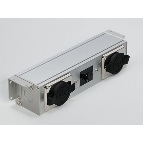 3PECコンセント付(2個)。15Aブレーカー付。ねじ止めで木什器へ取付可能 |