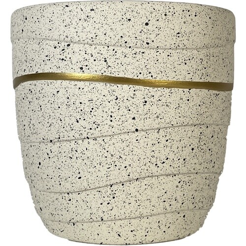 ゴールドのリングラインがアクセントになった陶器鉢です。黒や ゴールドの細かい粒子が入っており、高級感のある見た目です。 |