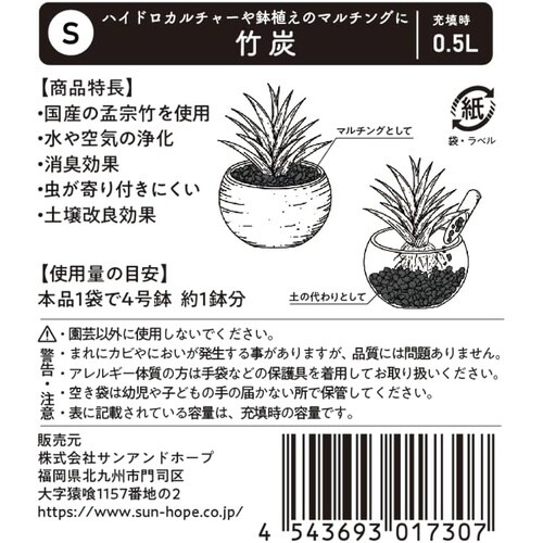 サンアンドホープ クラフト 竹炭 S粒 0.5L 培養土 専用 A0A2-7350