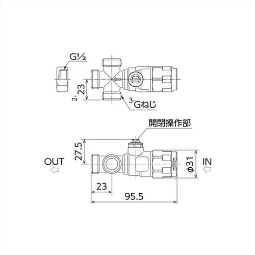 WB30型 流量調整ボールバルブ 三方分岐 2IV