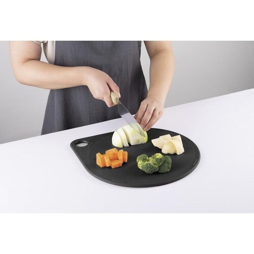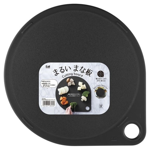 ・奥行きたっぷり、ひろく使えるまるいまな板。 |