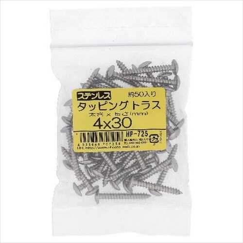 ・下穴をあけた鉄板などに使用するビスです。・ステンレス製なので、防錆性に優れております。・トラス頭です。