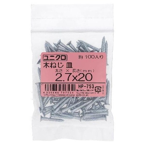 ユニクロ木ねじ サラ2.7X20 100P