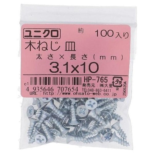 ユニクロ木ねじ サラ3.1X10 100P