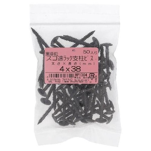 HP1304 亜鉛黒 ラック支柱ビス4X38