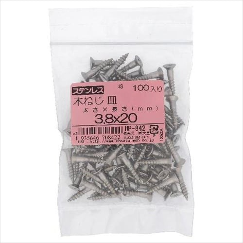 OHSATO ステン木ねじ サラ 3.8X25 100P A0A2-9145